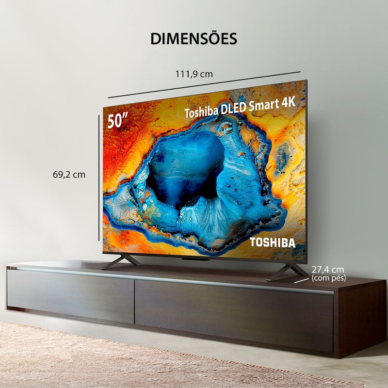 A Smart TV 50” Toshiba combina qualidade de imagem e som superiores com um design elegante e funcionalidades práticas. Ela é fácil de usar e integra perfeitamente qualquer ambiente.