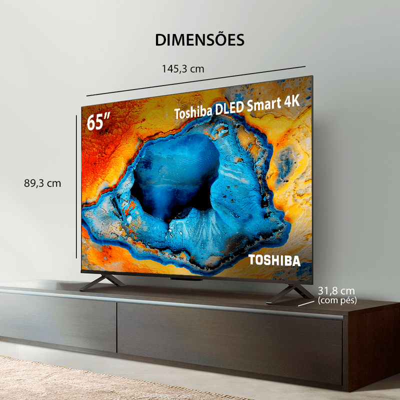 - Qualidade de Imagem Inigualável: Desfrute de imagens excepcionais com a tela de 65 polegadas DLED 4K da Toshiba, oferecendo detalhes nítidos e cores vibrantes.