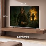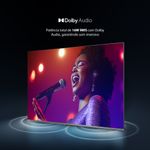 A tecnologia QLED e a resolução 4K proporcionam um brilho preciso e uniforme, com cores vibrantes e detalhes nítidos, oferecendo uma experiência visual de alta qualidade.